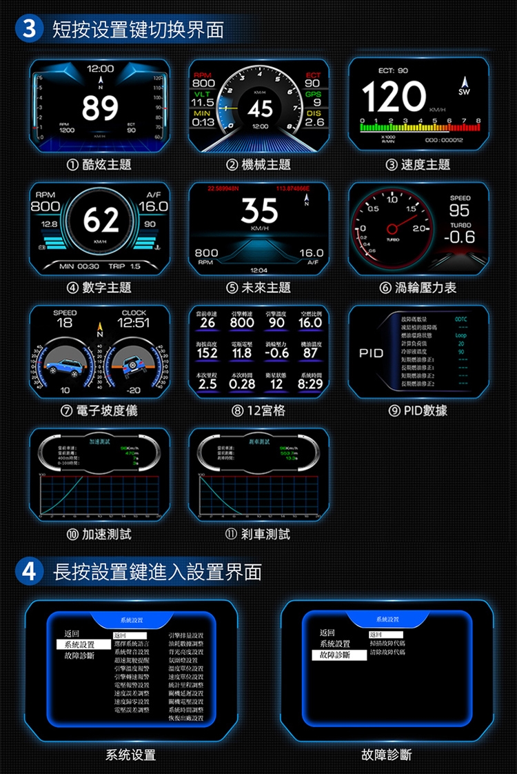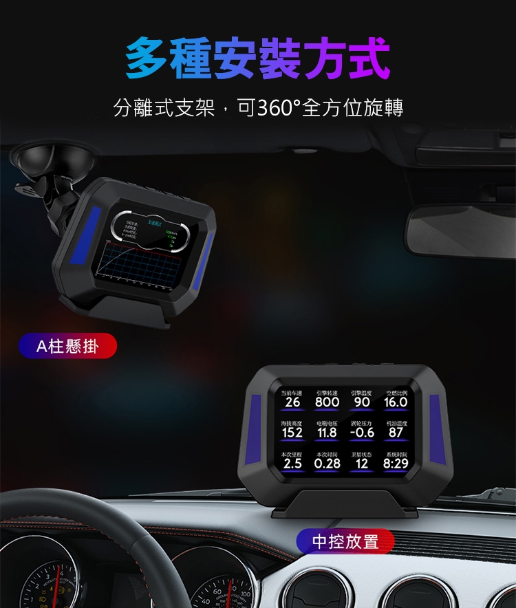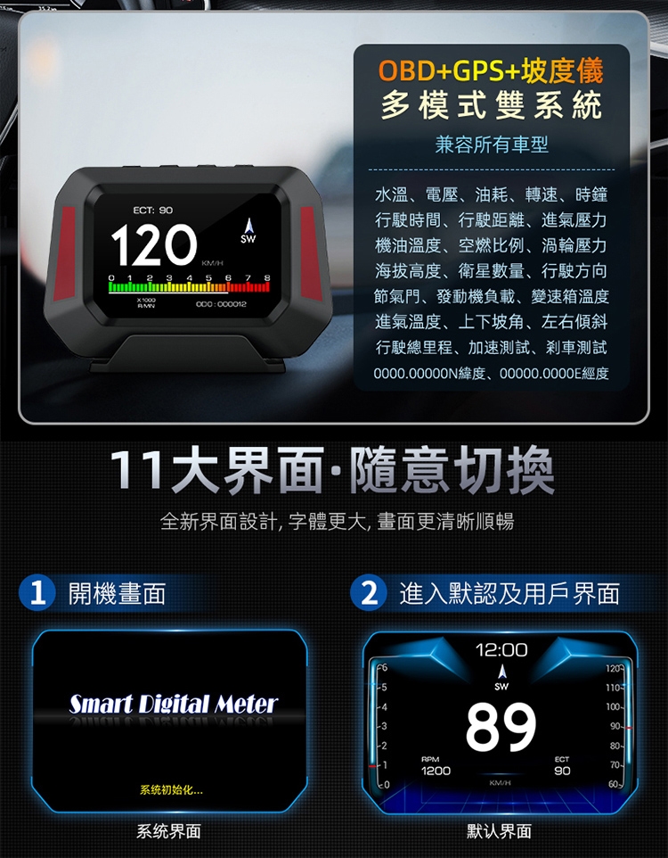 ■OBD2+GPS+坡度儀,多模式,雙系統