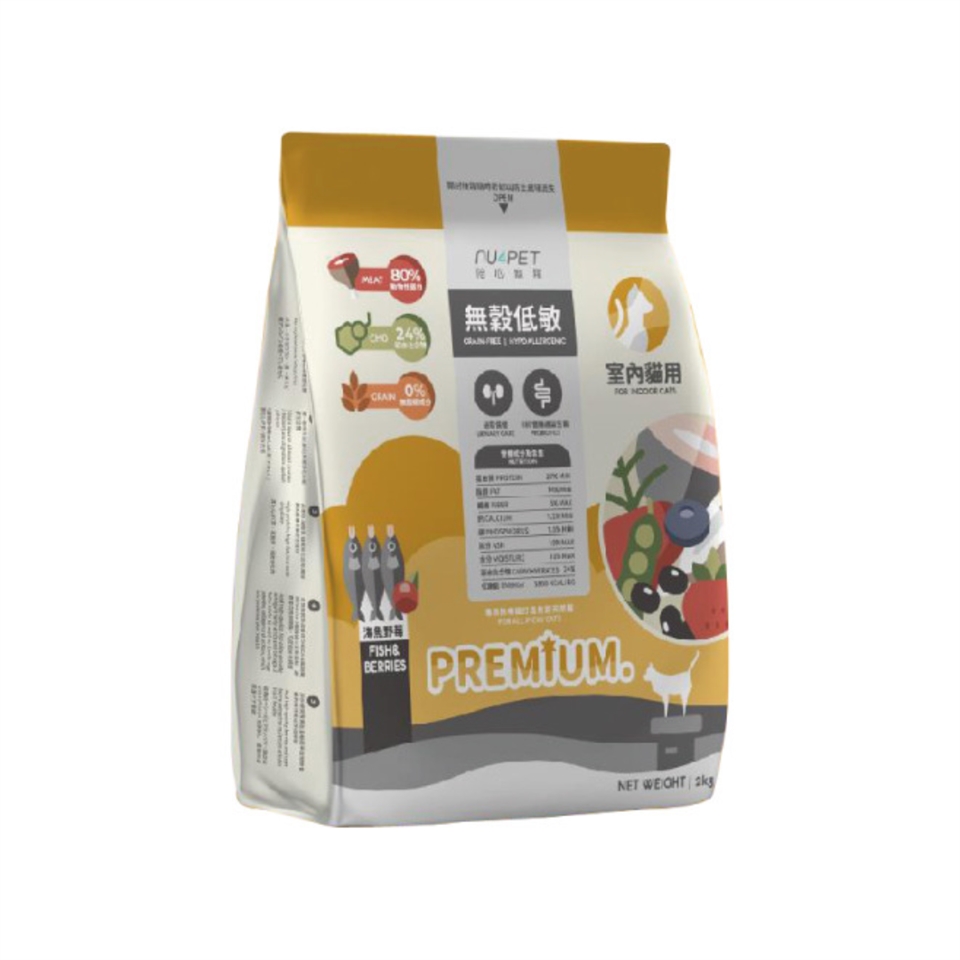 深海魚(鮪魚、鰹魚、秋刀魚)、糖蜜酵母、木薯、黃金亞麻仁籽、冷壓椰子粉、深海魚油(OMEGA-3、OMEGA-6來源)、絲蘭萃取物、甜菜、蔓越莓、藍莓、草莓、覆盆子莓、蛋黃、青仁黑豆、豌豆、大麥若葉、水解植物蛋白、腸道保健機能粉(半乳寡糖、山藥萃取物)、蔓越莓萃取物、腸道保健生菌、維生素(A、D、E、K、B1(硫胺素)、B2(核黃素)、B6(吡哆素)、B12(鈷胺素)、葉酸、泛酸、菸鹼酸、生物素)、礦物質(硫酸鋅、硫酸銅、硫酸錳、硫酸鐵、碳酸鈷、碘化鉀)、牛磺酸、氯化膽鹼、DL-蛋胺酸、離胺酸。