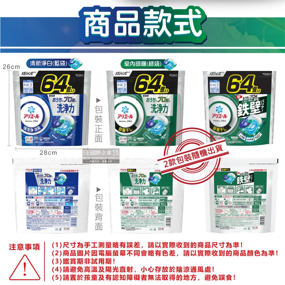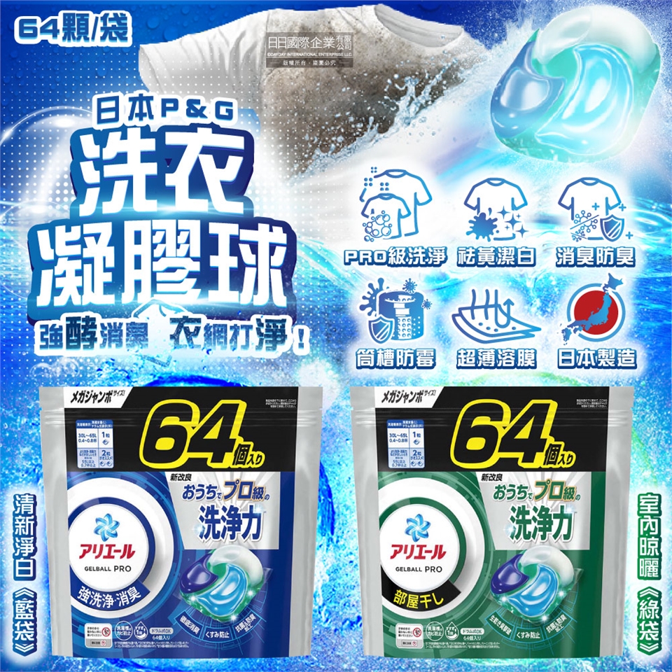 ●品名:Ariel PRO級酵素強洗淨力去污消臭洗衣凝膠球