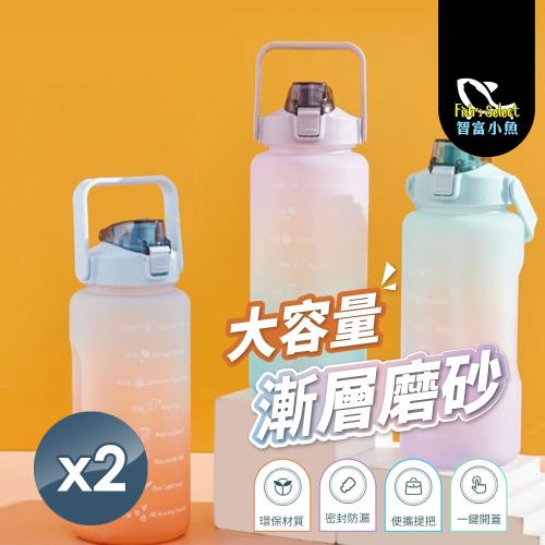 【小魚嚴選】漸變磨砂大容量兩公升水壺2入組