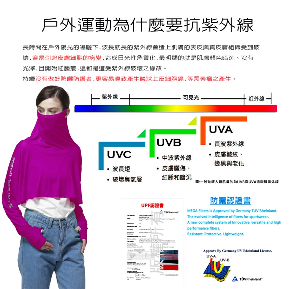 🔸通過ARPANSA澳洲檢測、德國TUV、台灣紡拓會檢測防曬指數為UPF50+,可防止99.9%的紫外線傷害肌膚