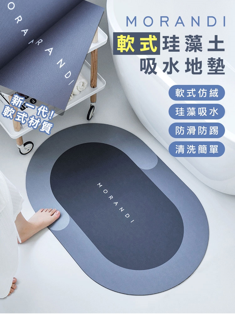 最新款 莫蘭迪軟式硅藻土吸水地墊 來嘍~改善你舊式硅藻硬式地墊,易髒還需砂紙磨刷的麻煩,全功能地墊 止滑耐磨、超薄輕盈、仿絨親膚、可剪裁、可捲收、好清洗~最新莫蘭迪色系長方型/橢圓型各四色,讓你居家好搭配~還有什麼地墊比它更好用!!!
