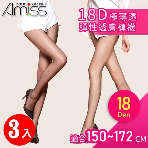 【Amiss】18D極薄透彈性透膚褲襪3入組(1101-1B)