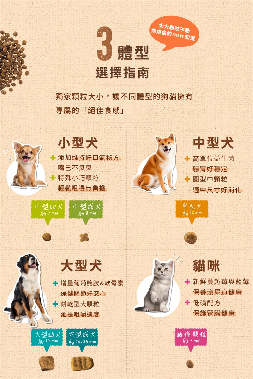 ※選擇寵物食用速度適合的飼料包裝,購買大包裝請裝在密封罐裡以免受潮。