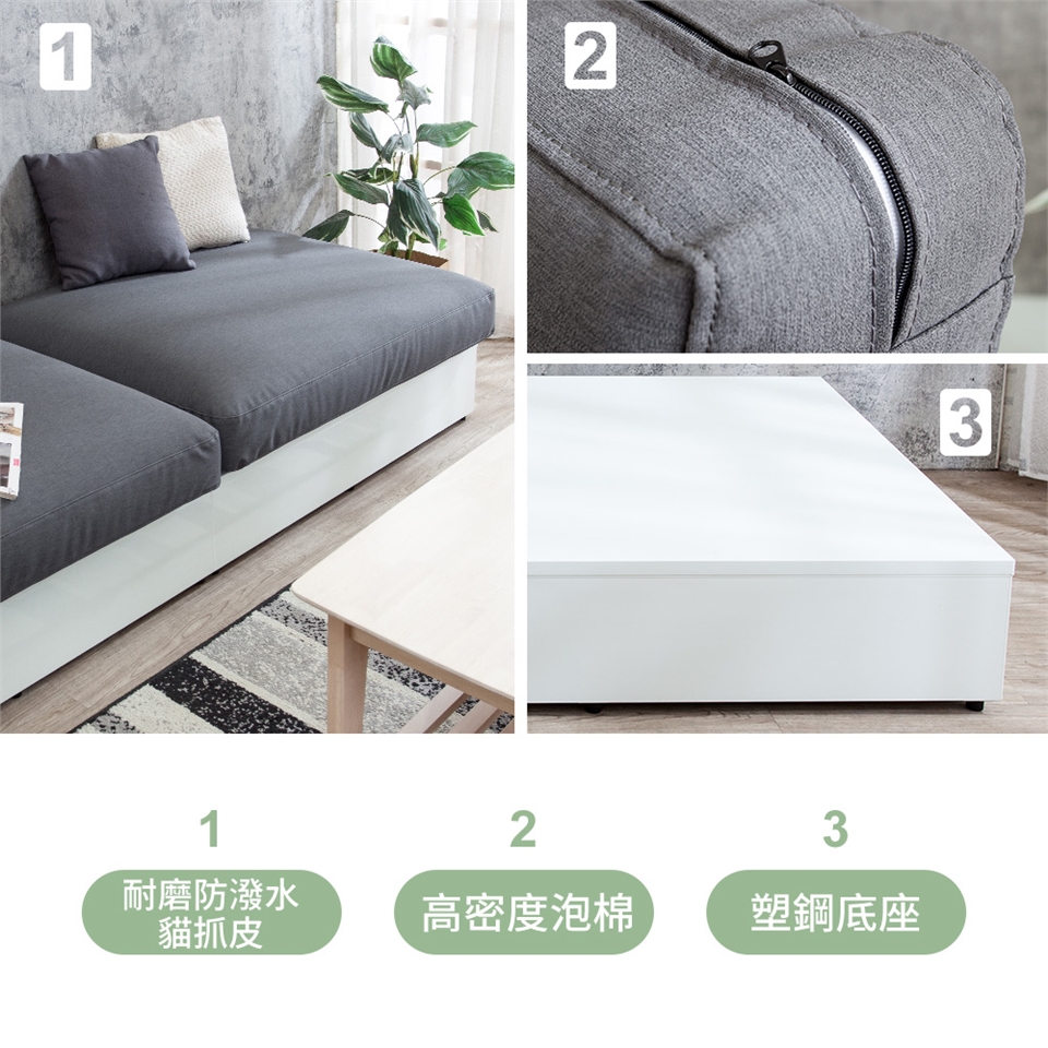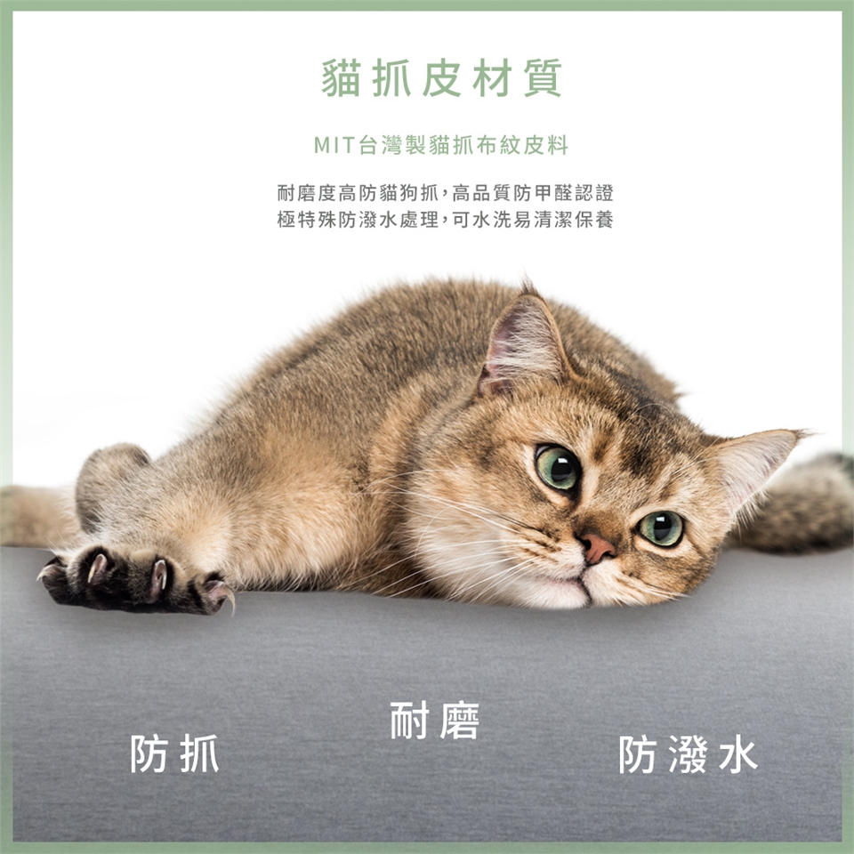 採用質感高耐磨貓抓布紋皮革,經特殊防潑水處理,讓您輕潔保養更加輕鬆!