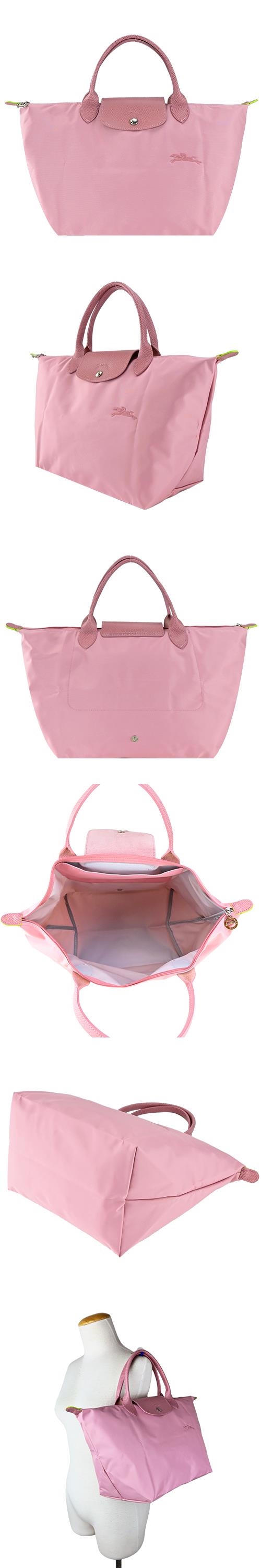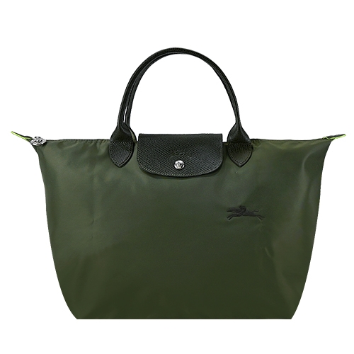 LONGCHAMP LE PLIAGE GREEN系列刺繡短把再生尼龍摺疊水餃包(中/多色選)