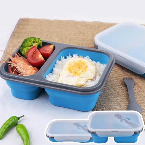 EZlife 微波加熱折疊矽膠分隔 (附叉匙)便當盒