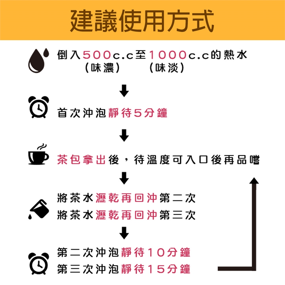 ※可依個人喜好,增減水量,調整濃淡,反覆沖泡至無味。