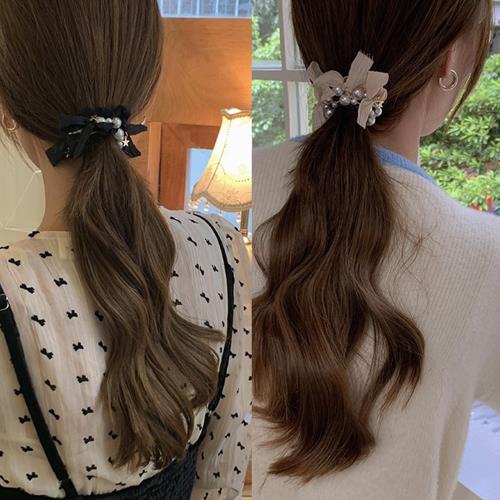 【Emi艾迷】韓系 溫柔綁帶蝴蝶結珍珠髮圈