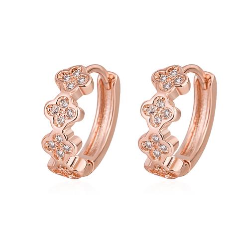 【Emi艾迷】幸運非凡四葉草玫瑰金微鑲鋯石環繞耳環