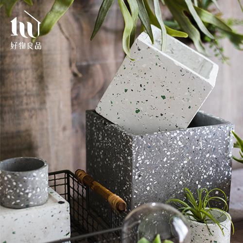 【好物良品】長形水磨石手作水泥盆栽花盆花器(2款任選|附十字花架)
