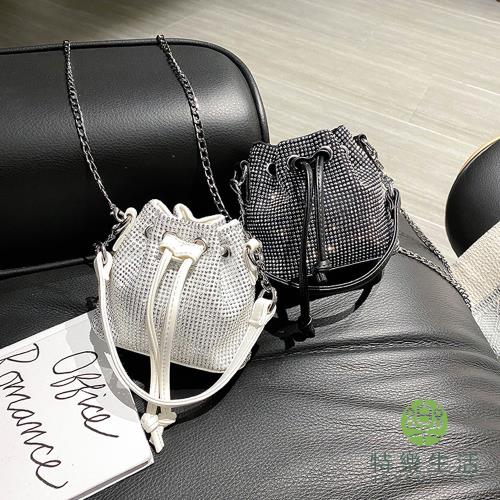 【JOYFUL LIFE 特樂生活】亮鑽鍊條水桶包 單肩手提包 手拿包
