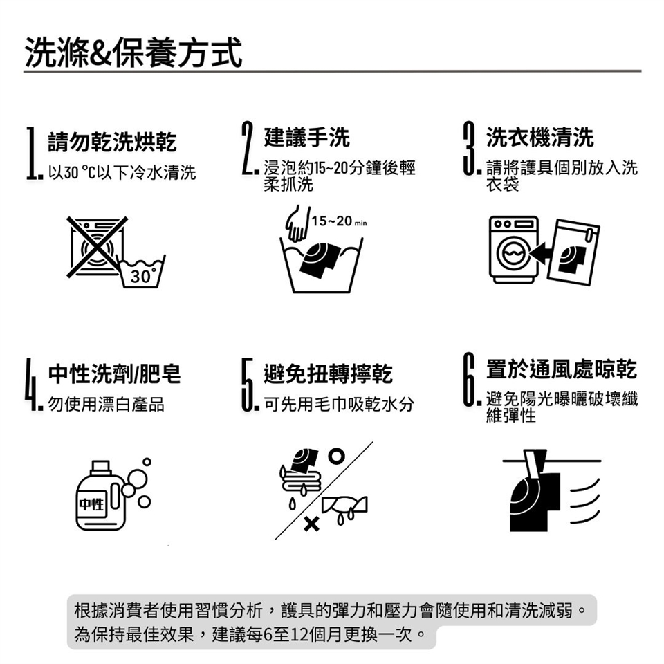 ☄洗衣機清洗_請將護具個別放入洗衣袋中,洗後請置於通風處晾乾,勿乾洗烘乾。
