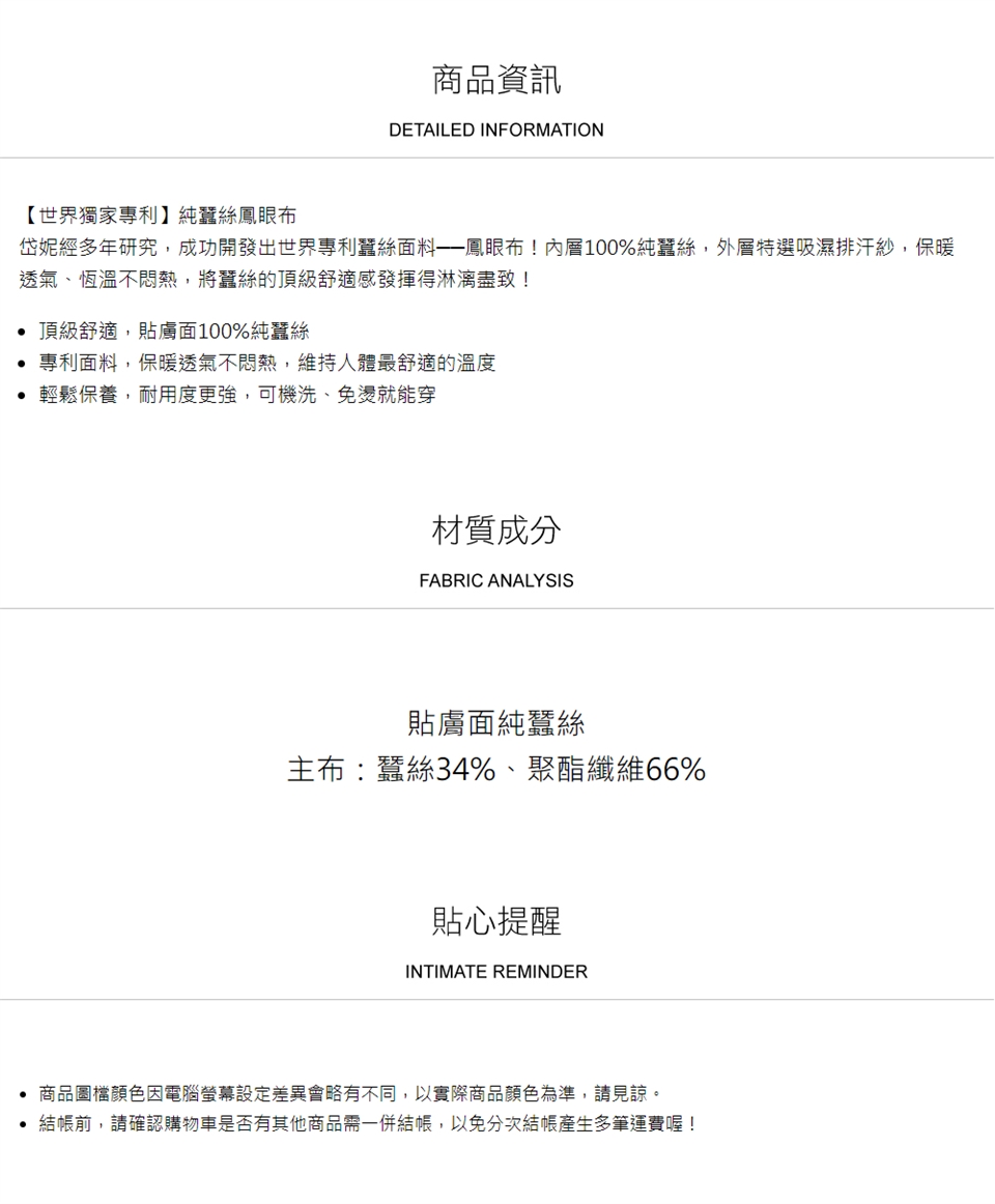 ► 請避免於太陽直射處曝曬,避免蠶絲纖維損壞。