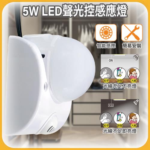 [明沛]5W LED聲光控感應燈-電線插頭式-光控+聲音感應-簡易安裝-MP8396