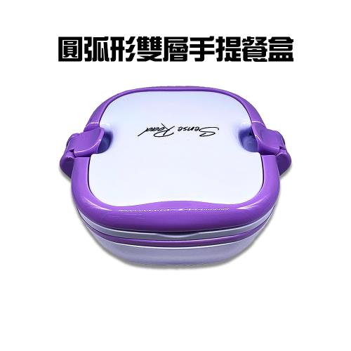 2組圓弧形雙層手提餐盒/便當盒/保鮮盒/冷藏/收納/微波