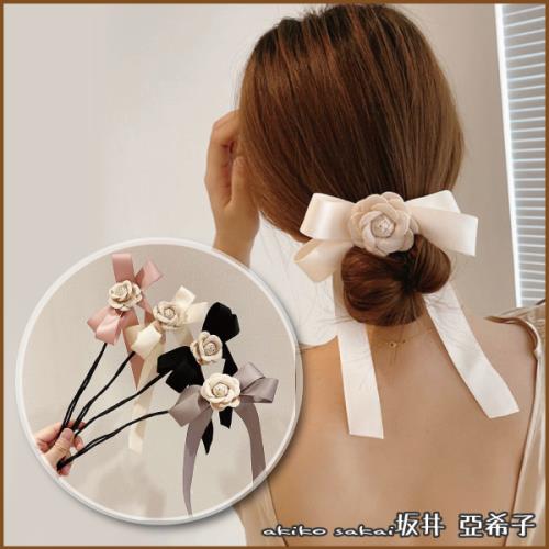 『坂井.亞希子』日系柔美緞帶蝴蝶結山茶花造型盤髮器