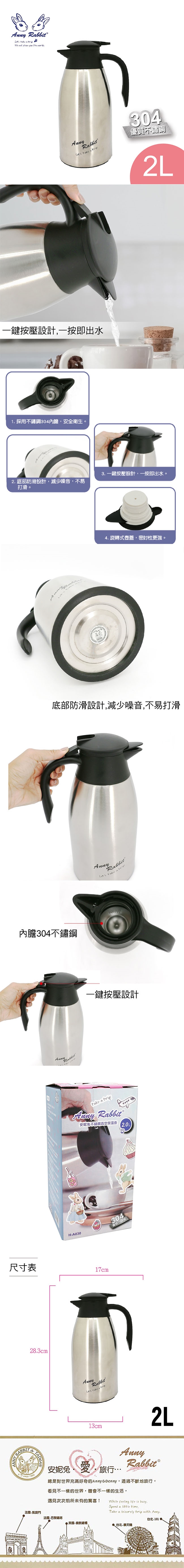 安妮兔 304不鏽鋼真空保溫壺2L H-A030