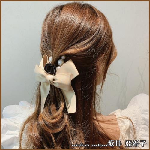 『坂井.亞希子』日系柔美珍珠蝴蝶結造型髮抓夾