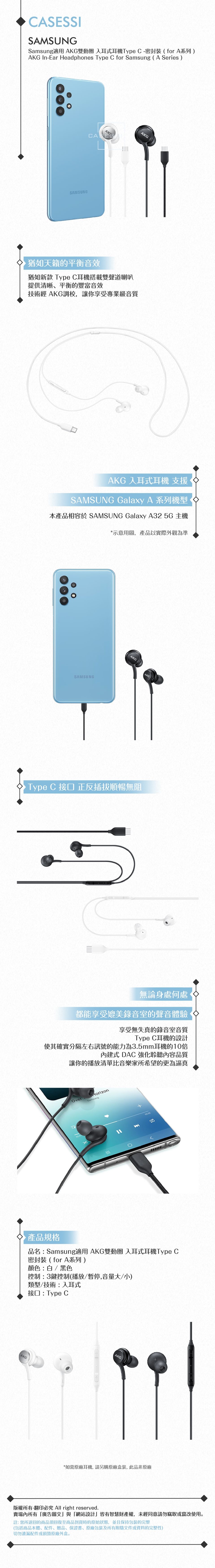 商品名稱:Samsung適用 AKG雙動圈 入耳式耳機Type C -密封裝 ( for A系列 )