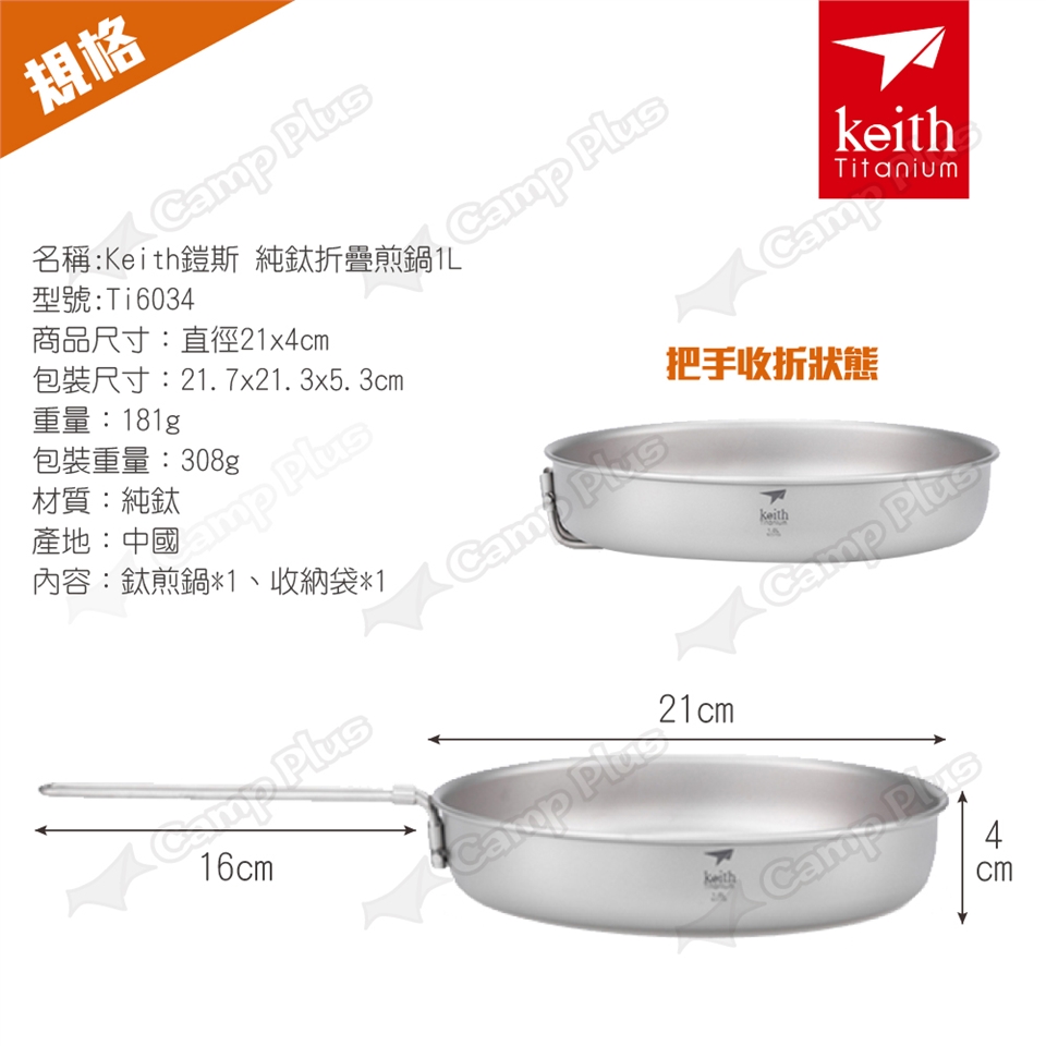 名稱:Keith鎧斯 純鈦折疊煎鍋1L