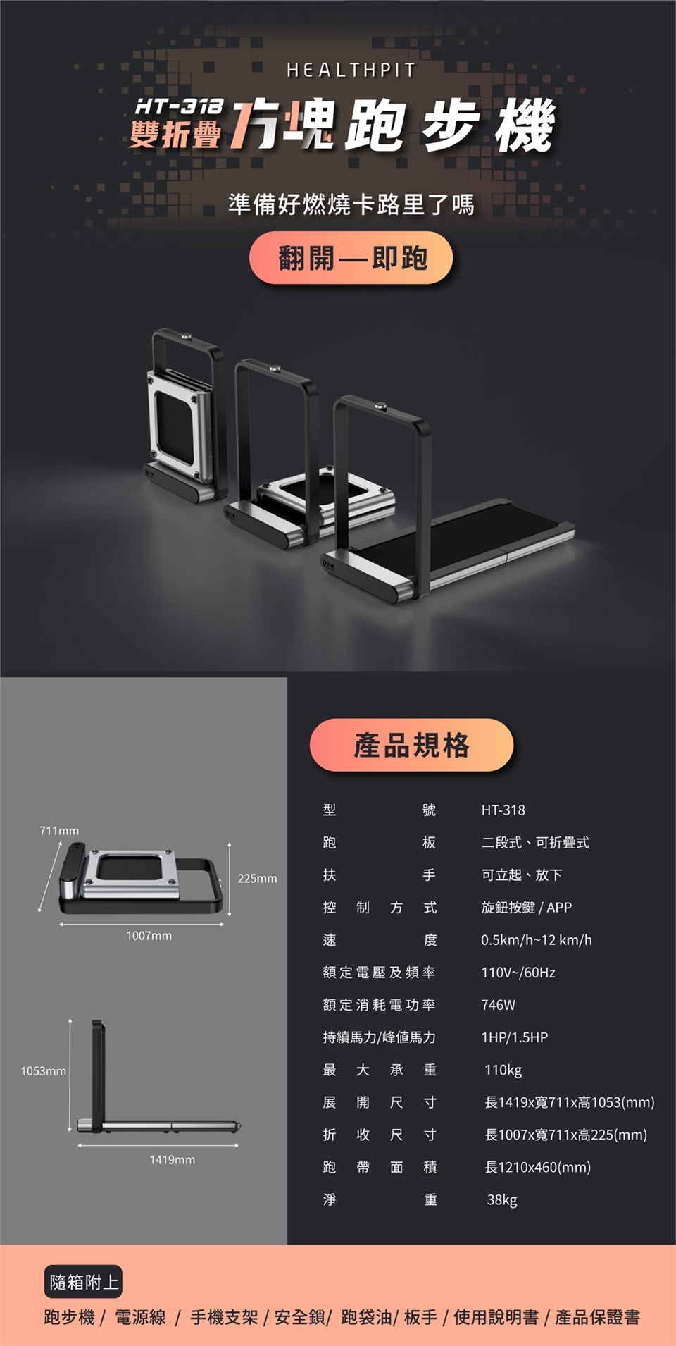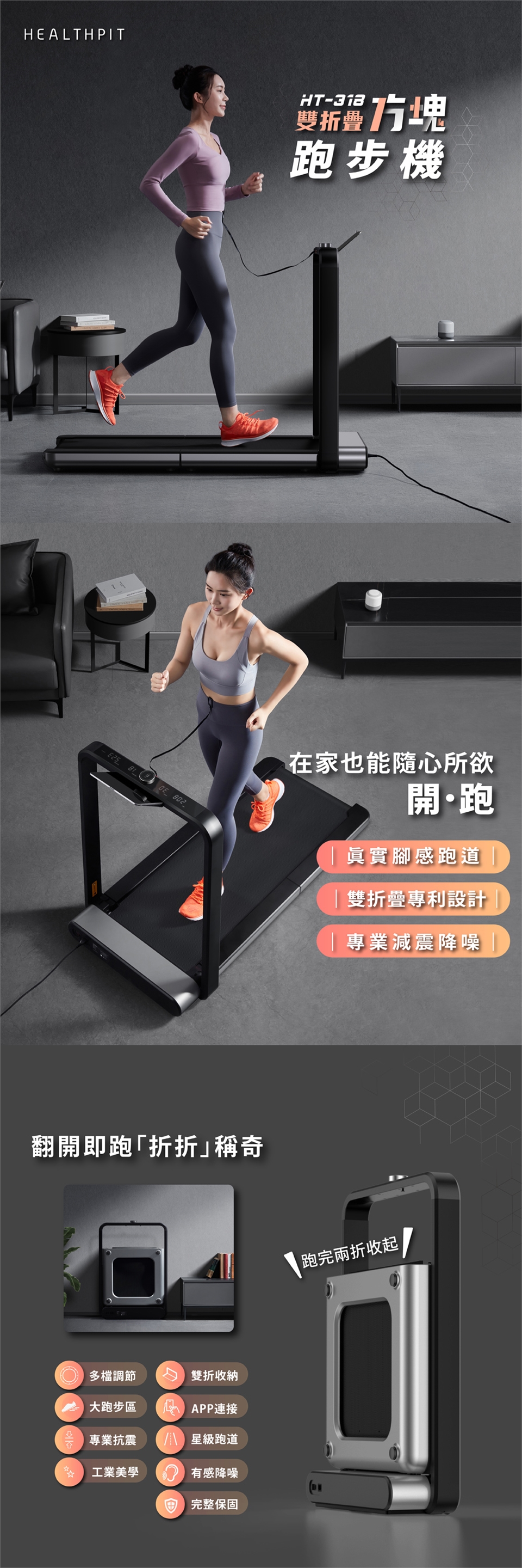HEALTHPIT 雙折疊方塊跑步機 HT-318