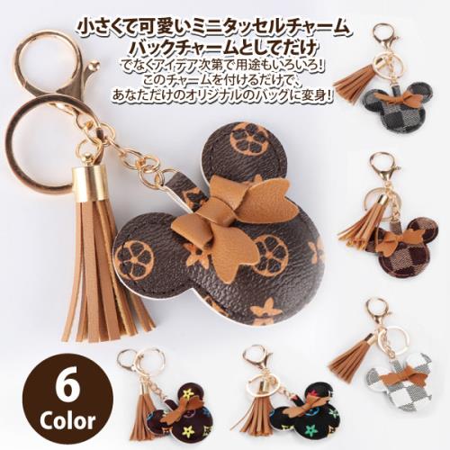 『坂井.亞希子』老花皮革蝴蝶結米奇流蘇造型錀匙圈