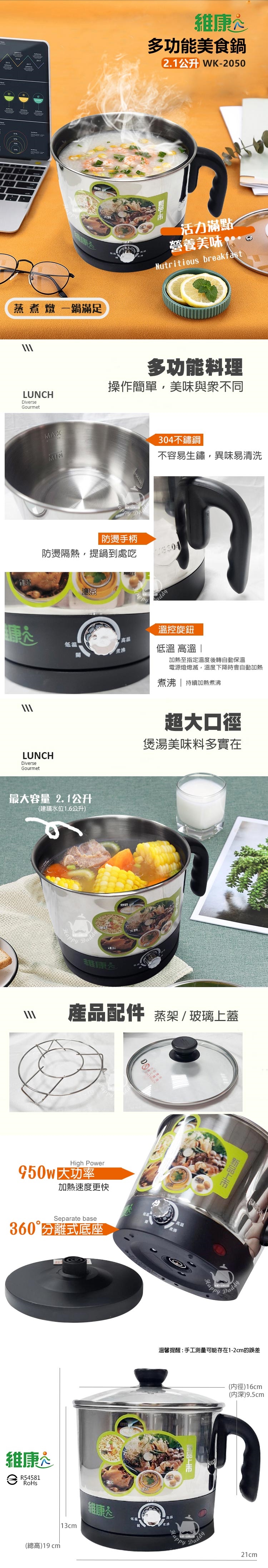 【維康】1.8L多功能美食鍋WK-2050