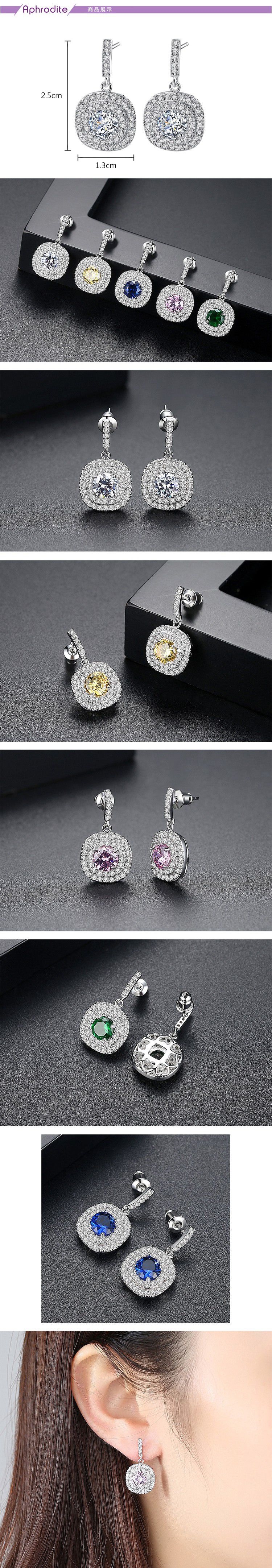 【愛芙晶鑽】微鑲美鑽閃耀鋯石一字方形耳環 造型耳環 美鑽耳環 (5款任選)