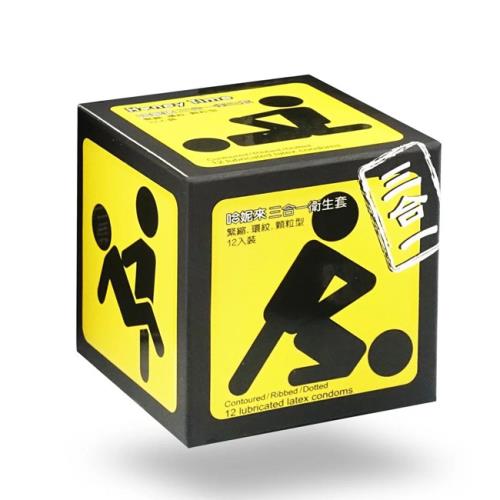 壞男情趣 Honey Time 樂活套三合一型保險套52mm-黃球12入 前端環紋、中段緊縮、後段細顆粒