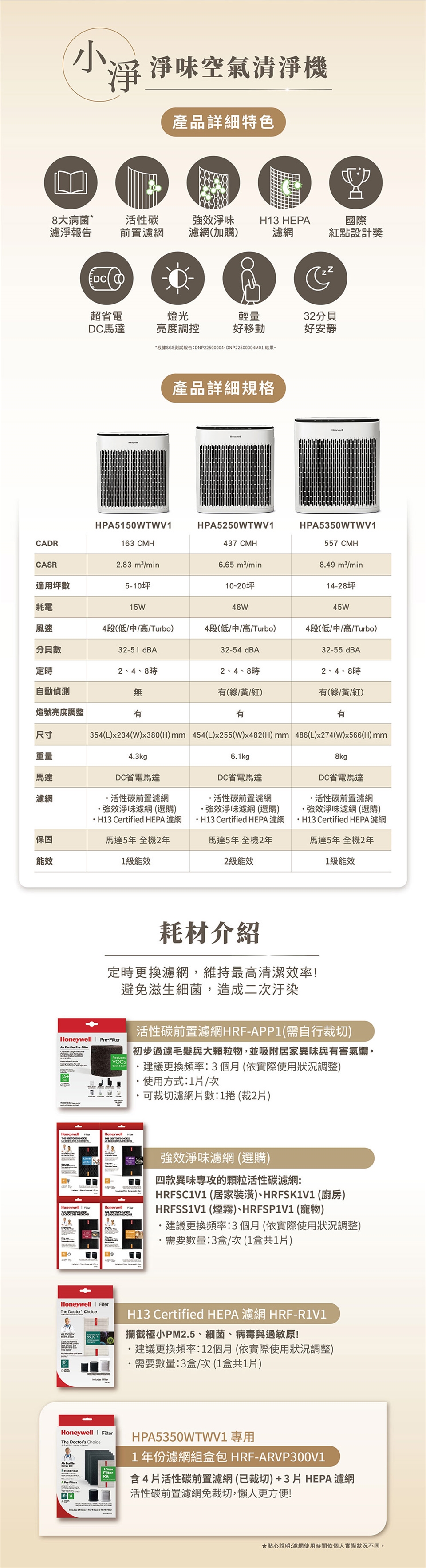 ●如欲加強淨味效果,可加購強效淨味濾網:HRFSS1(煙霧)、HRFSC1(家居裝修)、HRFSK1(廚房)、HRFSP1(寵物) (需另購3片,建議3個月更換一次)