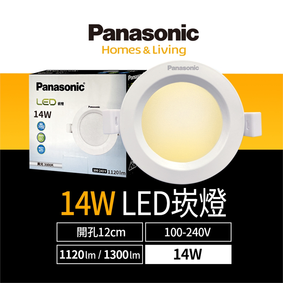 【Panasonic國際牌】LED 崁燈 14W 12cm 不眩光 全電壓 附快速接頭 保固一年 白光/自然光/黃光