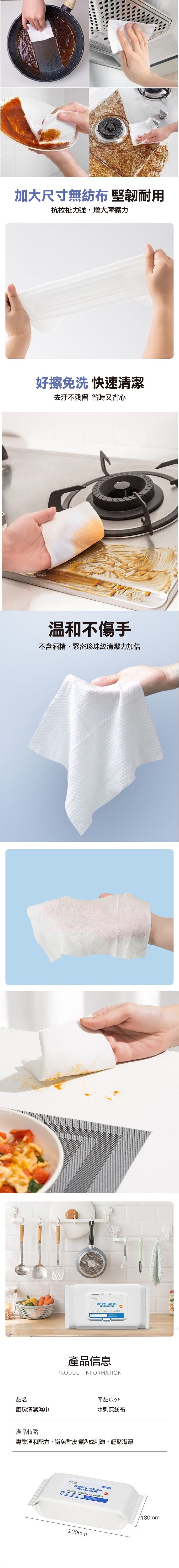採用優質不織布材質,吸水性好吸油力更強,蘊含潔淨因子,檸檬提取液,溫和滋潤不傷手,不用任何清潔劑或洗潔精,只需抽下一抹,去污不留痕,用完即拋,潔淨好輕鬆,方便實惠