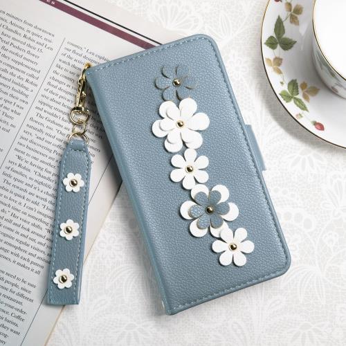 Aguchi 亞古奇 Apple iPhone 12/12 Pro (6.1吋) 花語 鉚釘立體花朵手機皮套 頂級柔軟皮革 附皮質璀璨吊飾 - 蔚藍
