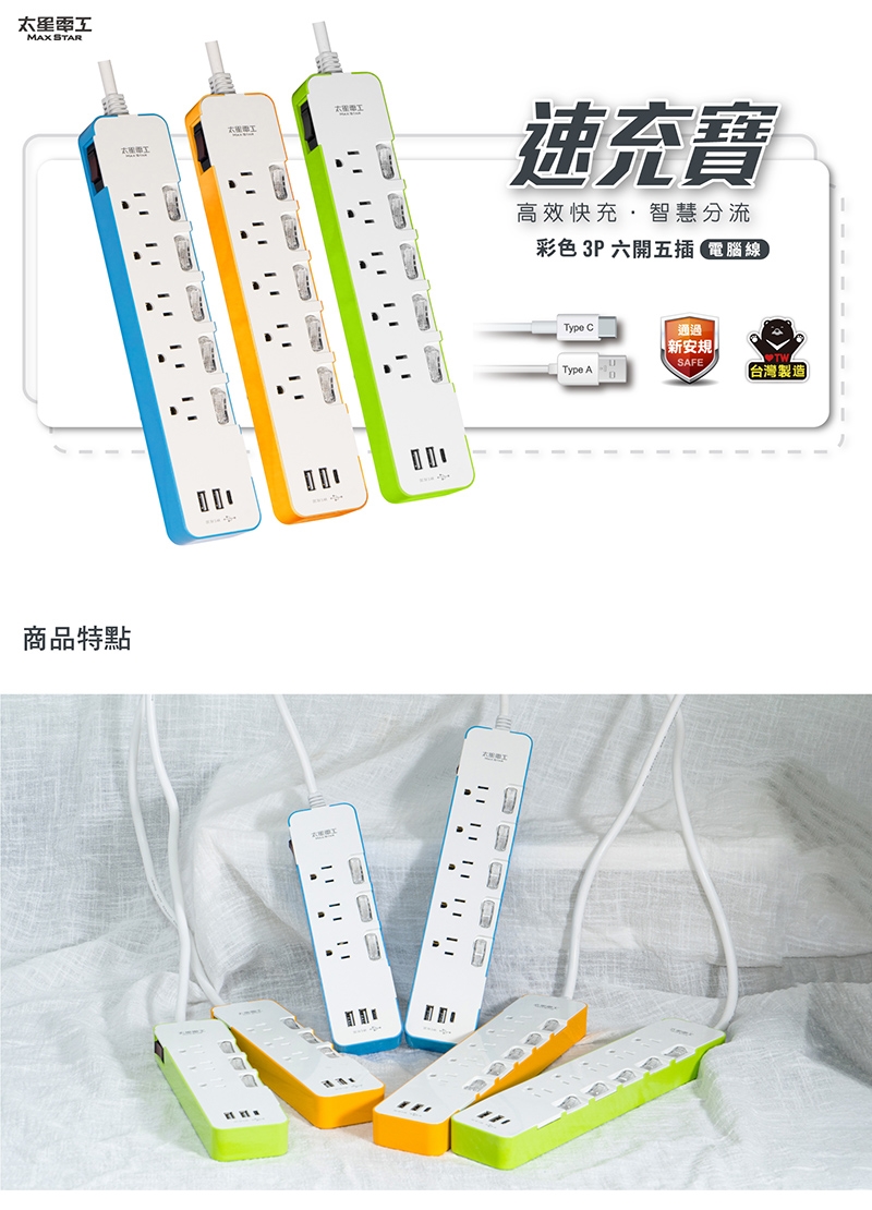 2. Type A+Type C:二種接孔,充電多元化,節能省電又省時。