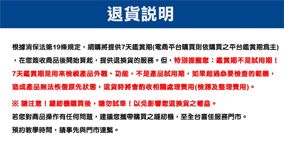 全台喜佳門市,提供售後服務及課程教學。(詳情請參照券之背面說明)