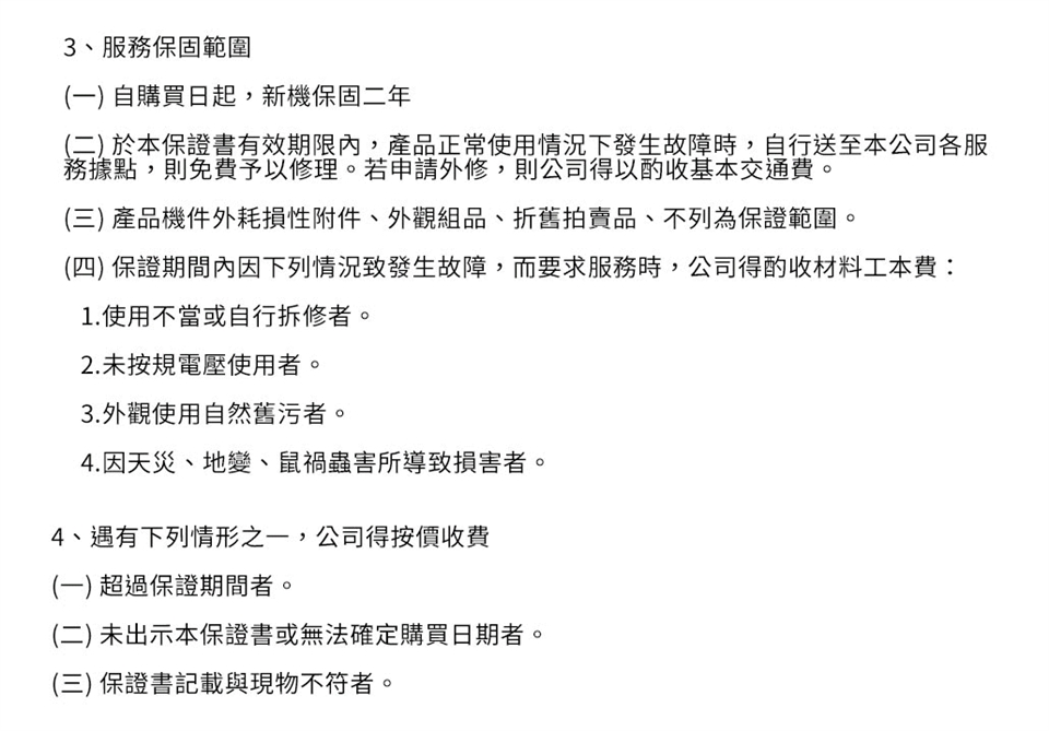 新機保固2年