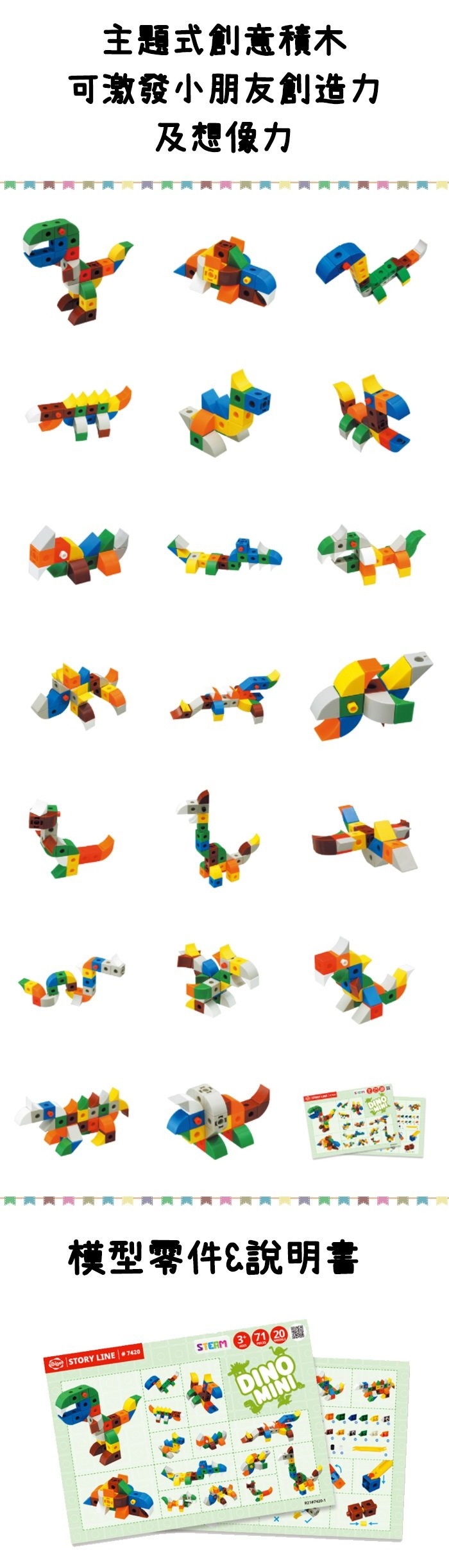 ◆ 運用鮮豔多彩積木 可組合出一系列恐龍造型積木