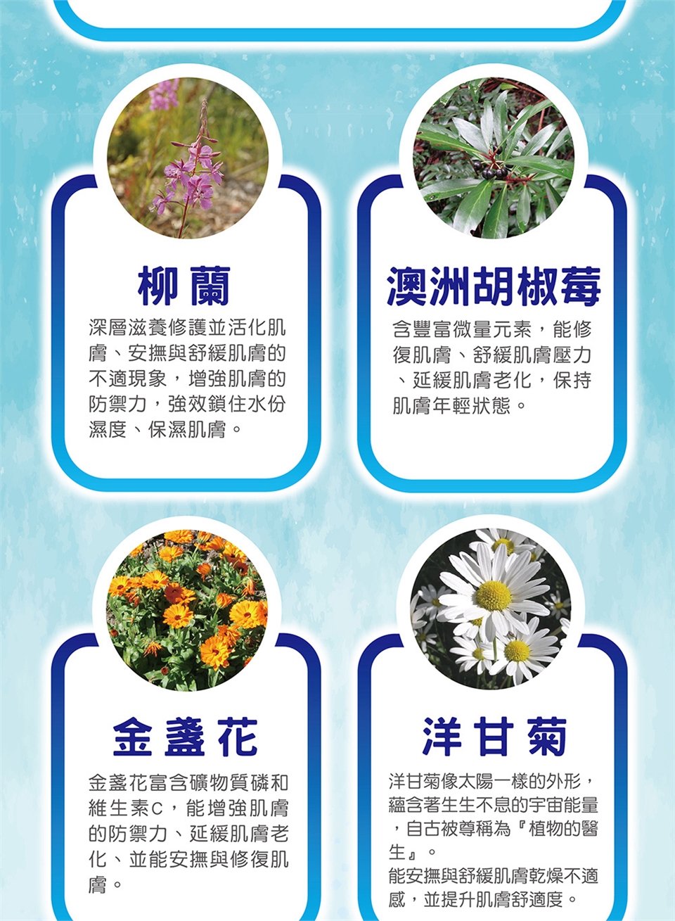 用途:舒緩肌膚不適感、舒緩肌膚壓力、舒緩疲倦的肌膚。