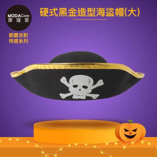 摩達客★萬聖派對變裝扮★硬式黑金造型海盜帽(大)★Cosplay