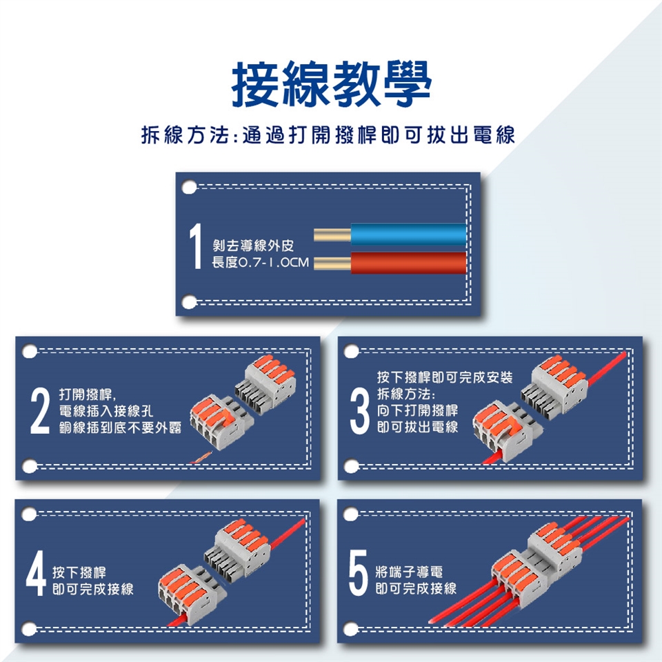 適用導線:軟線、硬線:0.2mm² -4.0mm²
