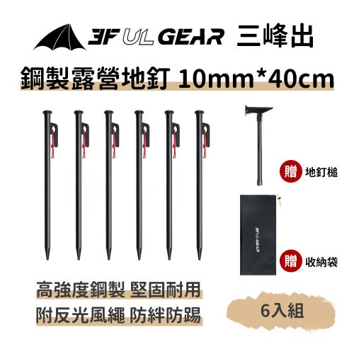 三峰出【高強度 鋼製地釘 10*40cm 6入】附收納袋地釘槌 營釘 露營釘 大黑釘 帳篷釘 天幕釘 鋼釘