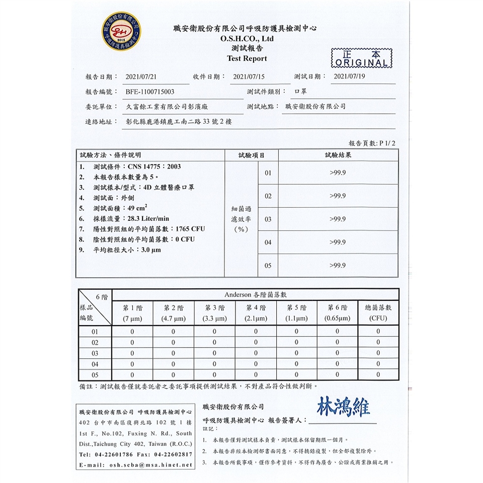使用國內大廠HEPA級靜電熔噴不織布:第一層撥水性不織布、第二層HEPA熔噴布、第三層HEPA熔噴布、第四層超柔細複合纖維不織布