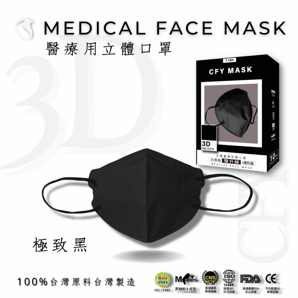 3D立體剪裁、4層防護、4層過濾效果、雙層熔噴布過濾防護,可解決測漏問題、更服貼