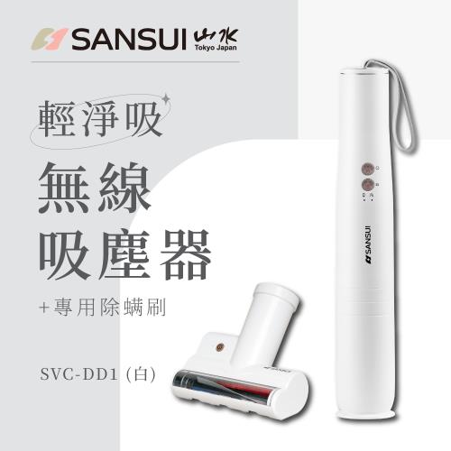 【SANSUI 山水】輕淨吸迷你無線吸塵器+塵蹣刷組(SVC-DD1白+SVC-003白)