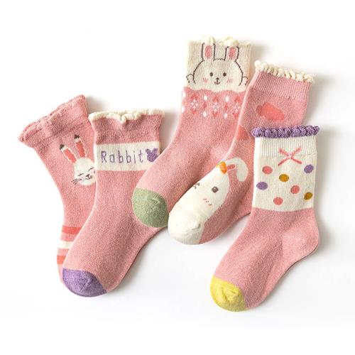 優貝選 舒適學生童襪5入套組-雲朵小兔