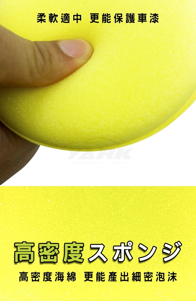 採用高密度海綿材料,耐用性佳,不易破裂,大大降低海綿的吸蠟率,可薄而均勻地塗抹。觸感柔軟,硬度適中,輕柔保護漆面