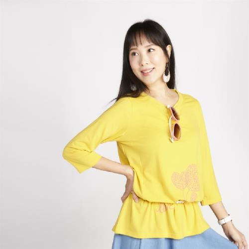 蘭陵(1入)靚麗印花造型長上衣I09-08薑黃