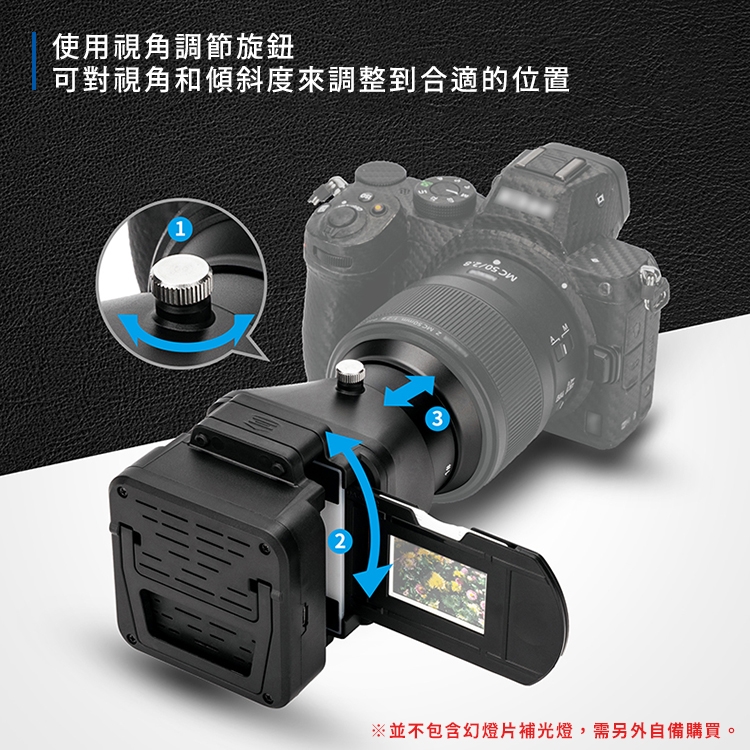 ●搭配調節旋鈕(可調整視角和傾斜度),減少翻拍造成的影像變形...等。