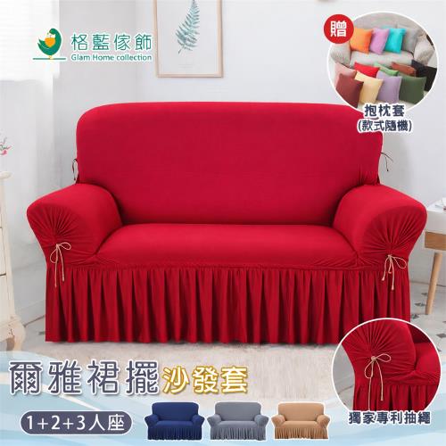 【格藍傢飾】爾雅裙襬沙發套-1+2+3人座(4色可選)